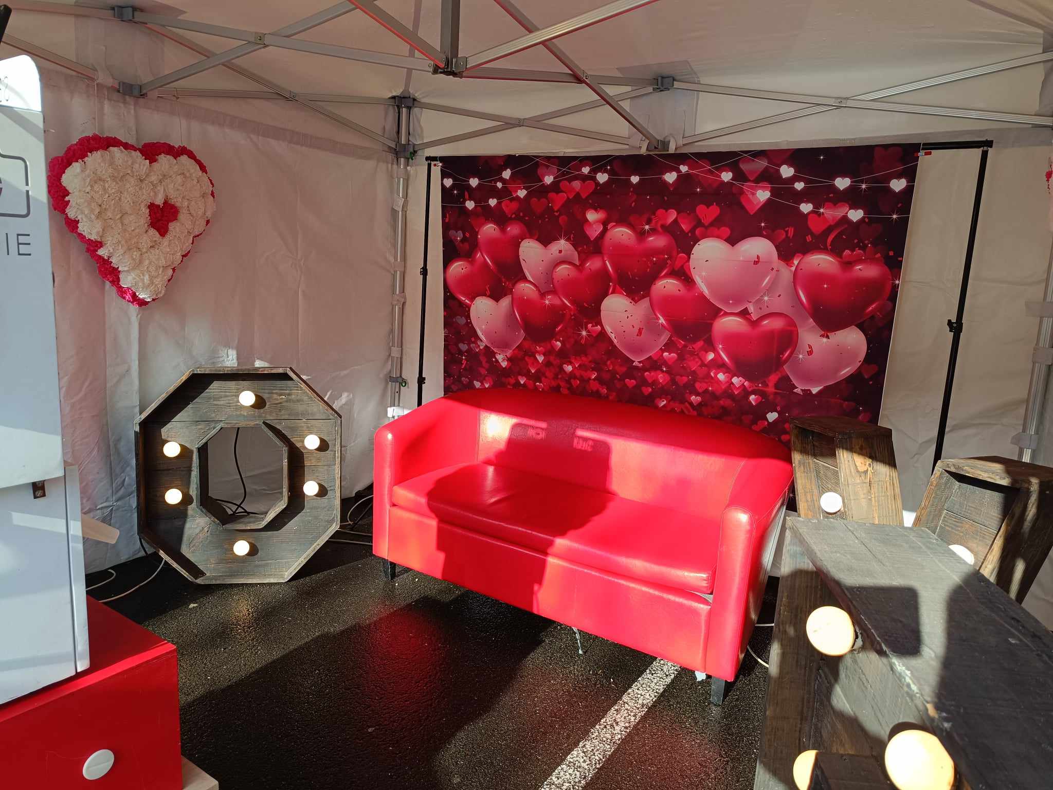 📸 Coin photo romantique : fond décoratif et accessoires de couple pour immortaliser le moment.