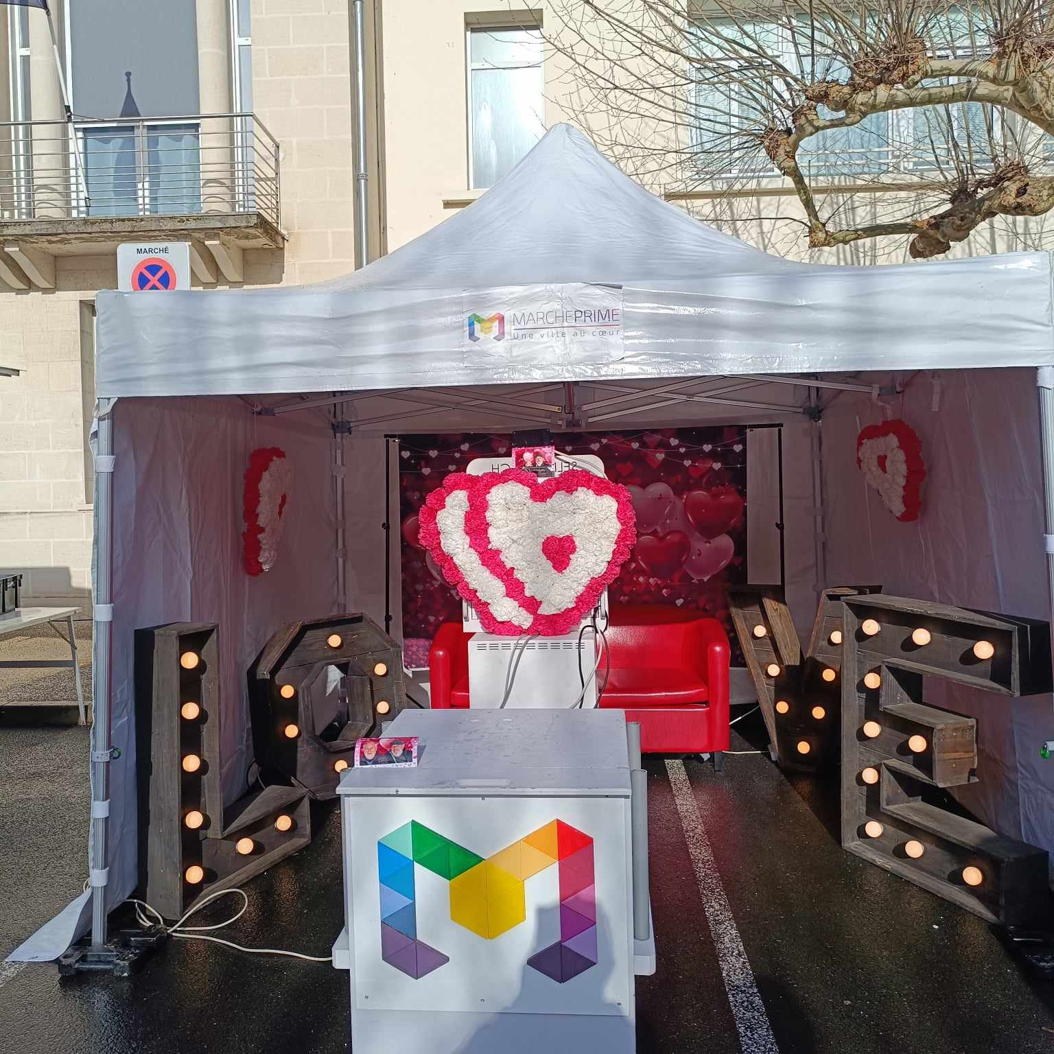 📷 Borne à selfie avec fond romantique